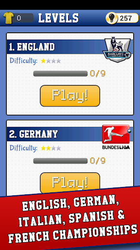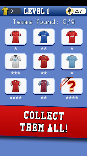 ● 144 teams football kit to find in 15 levels