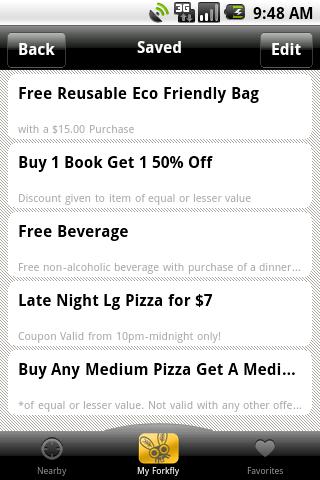 With ForkFly there are no coupons to purchase or emails to check, simply download the free app and see local businesses offering deals near you, immediately. You can check a merchant’s address and hours, even call them, with no searching necessary.