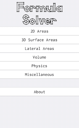 Now you can do all of those things with Formula Solver. Formula Solver is not a normal calculator, it comes with tons of formulas built-in that let you quickly and easily find the answer to a math problem in just a few taps! Just choose what you want to solve, give it the numbers it needs, and it will instantly show you the answer. You can also use the app as reference tool as every formula in the app is shown to you.