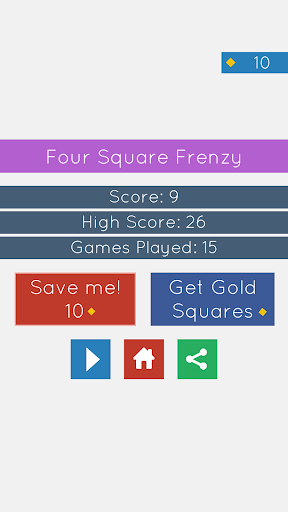 Embark on the journey of controlling the frenzy of squares as they rain uncontrollably at you! Touch anywhere on the screen to change the color of the bottom square as you try to match the colors with the falling squares. Compete with family and friends by comparing achievements and scores! Can you tame the frenzy??