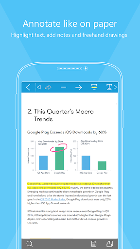 您是否還在尋找一款體積小、運行快速而且免費使用的PDF閱讀器?不妨試試Foxit MobilePDF!Foxit MobilePDF提供與Foxit Reader和Foxit Phantom PDF電子文件處理套件相同的PDF顯示引擎,採用與谷歌流覽器內嵌Foxit Reader相同的基礎技術,可以為廣大用戶提供快速和清晰的閱讀體驗。Foxit MobilePDF不僅僅是個閱讀器,它還提供豐富的功能,支援在安卓手機和平板電腦中閱讀、注釋、管理和共用PDF檔,為移動用戶提供最佳的PDF閱讀體驗,保證移動用戶可以隨時隨地輕鬆處理PDF檔。Foxit MobilePDF支援Foxit Cloud服務,可以與Foxit Reader無縫整合,提供與桌面產品一致的PDF閱讀體驗,讓您可以隨時隨地享受舒適的閱讀之旅。
