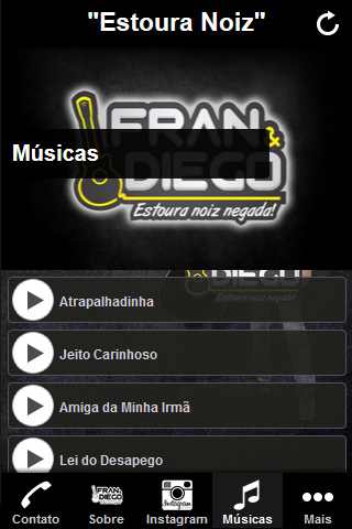 Aplicativo da dupla Fran e Diego. Com este aplicativo você tem acesso as novidades da dupla que é a sensação do momento no Ceará. Fran e Diego vem conquistando o público cearense com seu talento e carisma! Sua diversidade nos gêneros musicais são marcantes e os diferenciam das duplas tradicionais. Os irmãos Fran & Diego decidiram em 2009 variar o estilo musical e optaram pelo gênero “sertanejo universitário”, essa decisão proporcionou aos dois uma grande visibilidade local. Hoje, são considerados uma das melhores duplas sertanejas do estado, com uma agenda fixa semanal bastante recheada. Eles ainda se dedicam a festas particulares como casamentos, bodas, aniversários, bailes, formaturas e outros tipos de eventos. Além da habilitação dada pela OMB – Ordens dos Músicos do Brasil, Fran Oliveira é graduado em Música pela UECE-Universidade do Estado do Ceará, fato que o credencia ainda mais como um músico profissional .