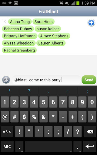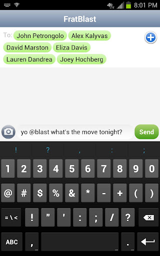 Send personalized mass text messages so that no one thinks you’ve sent a mass text. The legendary “@blast” insert gets replaced by each receiver’s first name when you press send. It’s like mail merge for text messaging. There are dozens of ways to use FratBlast: asking what all of your friends are doing, organizing sports practice, finding the popular bar, and of course… inviting everybody to the party.