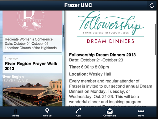 Frazer UMC is a faith community in Montgomery, AL dedicated to multiplying followers of Jesus Christ for the Transformation of the World. Our mobile app gives you instant access to video content, daily devotions, news and event updates, and more.