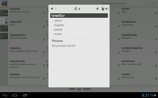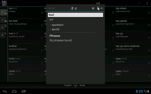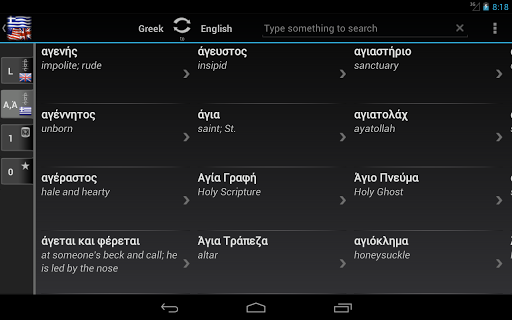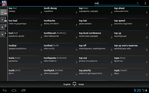 BitKnights makes quality apps for people who love or use languages. That's why we have been developing this app for 5 years now, and will continue to do so in the future. Our Greek English Dictionary & Translator is an easy to use, lightning fast, user friendly dictionary with a huge database. Lightning fast translates from english to greek and greek to english.