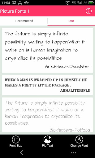 Our fonts pack can also be used on text which helps you make creative post for your social network.Many people write diary on the mobile phone. Our special fonts make your diary a good memory.