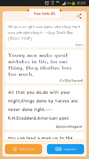 The fonts that we have in this app are not only practical, but the most pretty ones. Those font are able to apply on your entire cellphone, or you can change the font for keyboard if you like.