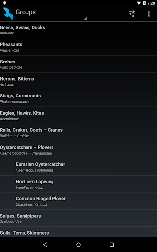 – Use one of six different lists to navigate among the birds. For example, you can choose to sort the birds in an alphabetical or a traditional systematic order.