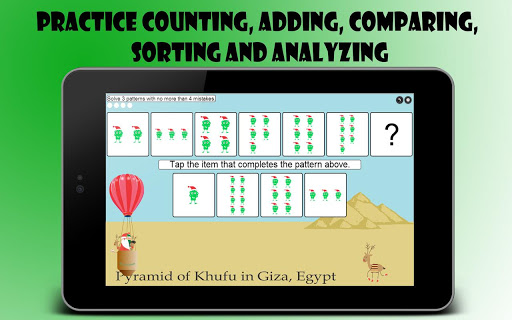 Kids Sequences, Counting and Patterns - Intermediate (Kindergarten and First Grade) : A math game with sequence and pattern puzzles that includes practice for counting by 1's, 2's, 3's, 5's and 10's.