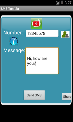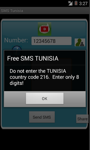 This free SMS to Tunisia app only provides capability to send SMS to Tunisia. This app cannot receive SMS. To receive SMS as reply include your own reply mobile number as part of this free Tunisia SMS sent.