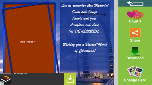 “Free ecards & Collage Maker” is an amazing advanced photo sharing with collage, photo frame and e-card (ecard) maker tool. You can create all kinds of custom personalized eCards.