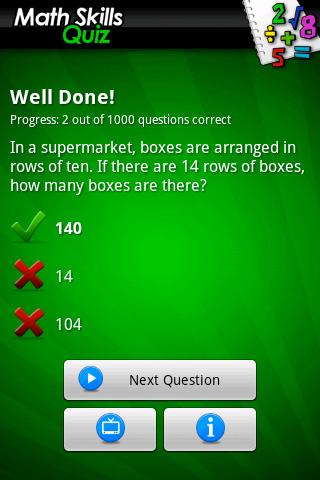 Whether you are learning math, want to brush up your knowledge, help your kids or just enjoy math quizzes, this fun application is right for you.