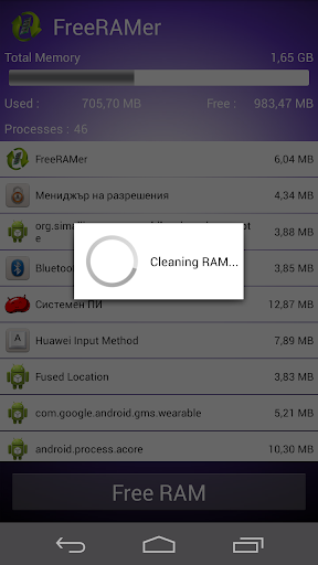 FreeRAMer is simple and easy to use application, which Boost your Phone Memory by killing low priority tasks, and thus cleaning RAM for working applications!