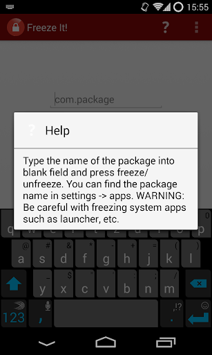 You just simply enter the package name, hit freeze/unfreeze and you're done. Easy!