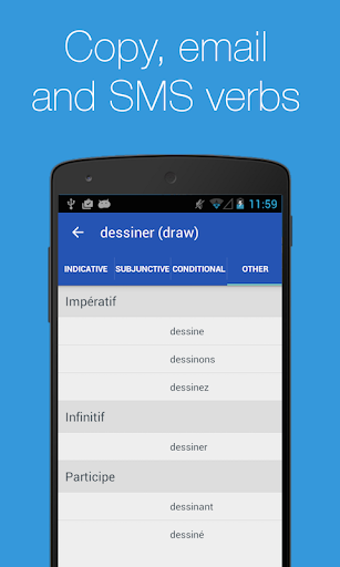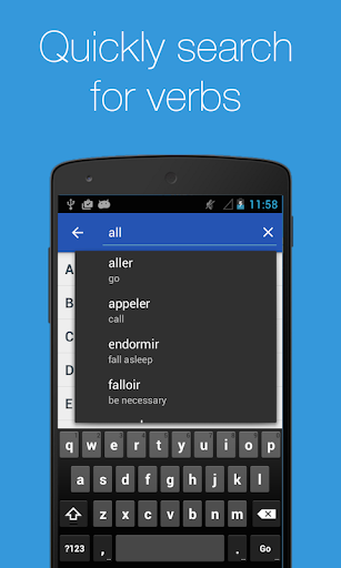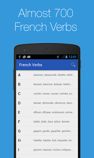 View almost 700 French verbs in 17 tenses. With simple navigation and built in search, you can find the verb you need in seconds.