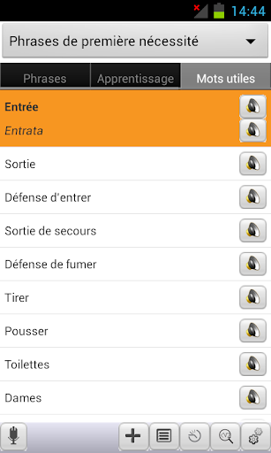 ECTACO Talking Phrasebook French–Italian and Italian–French for Android provides instant bidirectional translation of thousands of practical and useful phrases. It replaces bulky and inconvenient books and speaks all of its phrases aloud using clear, understandable native speaker voice narration for both languages. With it you will always be understood – even if you can't speak a word of another language.