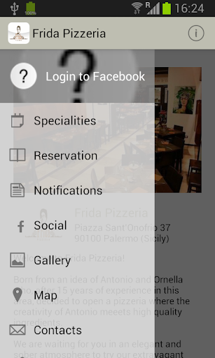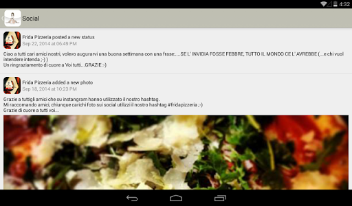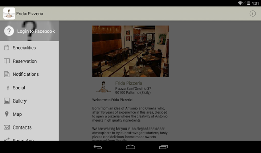Scarica la nostra app: potrai guardare le specialità che proponiamo, fare un giro del locale attraverso la gallery, prenotare facilmente un tavolo e raggiungerci usando il navigatore integrato.