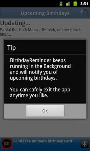 REMINDS YOU OF UPCOMING FRIEND"S BIRTHDAYS.