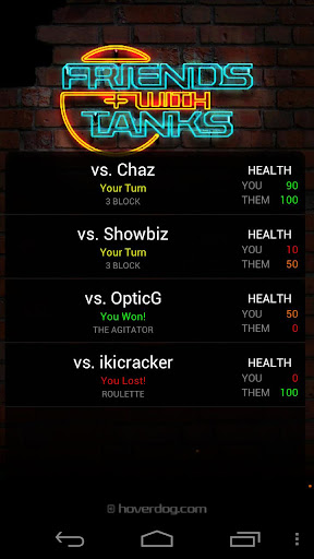 Friends with Tanks is the latest in social gaming! Test your friend’s skill and accuracy as you battle through several levels with multiple different weapons. Each scenario posses a different challenge, can you defeat your friends?