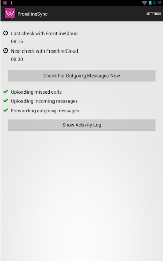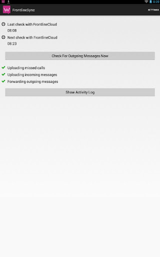 FrontlineSync allows users to connect their Android device to either FrontlineCloud or FrontlineSMS in order to use their mobile device as a connection for sending and receiving SMSs and tracking missed calls.