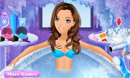 There's no sparkle that's more beautiful than the natural one that ice creates. in the enchanted Frozen Land lives the most beautiful fairy of them all. in her kingdom of snow, she makes sure there's only peace and love. it's a lot of work, but today she's going to spoil herself with a glamorous makeover. She's going to her fantasy spa to get some relaxing back scrubs, a rock massage and other delightfully relaxing facial and hair treatments. After obtaining a flawless look, all that's left is to get dressed up in the most gorgeous princess dress with sparkling, icy jewelry.