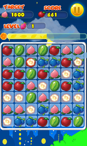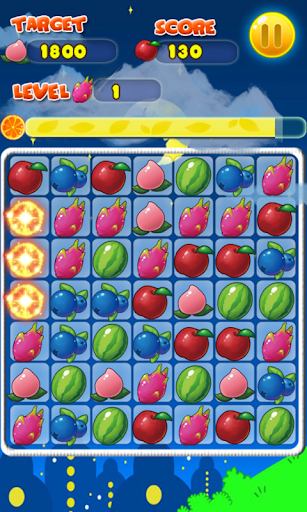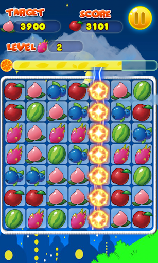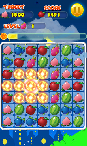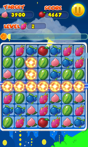 1.Match 4 fruit will generate a thunder fruit which can eliminate a row or a column fruits.