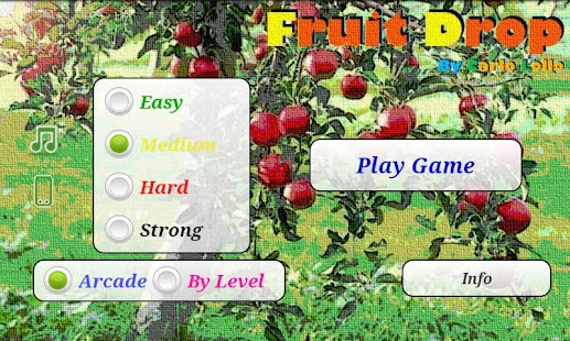 Fruit Drop is available in two game modes: Arcade and By Level.