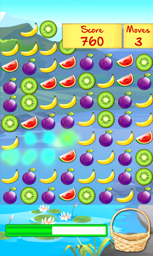 - match 3 or more fruits of the same kind by swiping them horizontally or vertically;