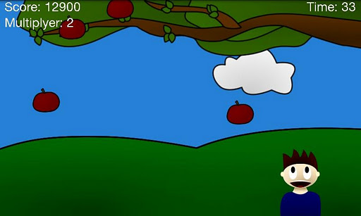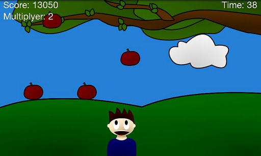 The basic idea of the game is to catch the falling fruit (apples) by tilting your phone from side to side, positioning the character below the fruit in order to collect it.