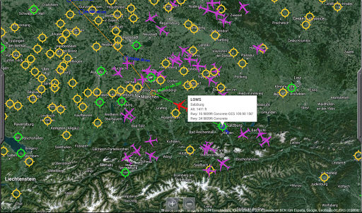 Additionally AI-traffic or traffic from the IVAO network could be displayed. Clicking on the other traffic markers displays information of the flight, e.g. destination, altitude, speed etc.