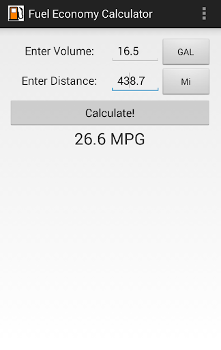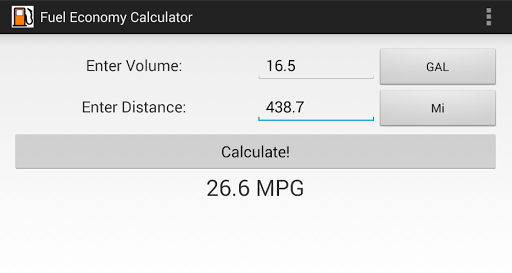Calculate fuel economy for any vehicle with this easy to use app. Select whether you want to see your output in either mpg or l/100km. Regardless you can input your distances and volumes in imperial or metric units!