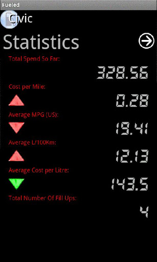 Fueled provides you the ability to monitor your vehicles fuel consumption. Simply add your fill-up to Fueled every time you fill up and Fueled calculates either your average MPG, L/100km or both.