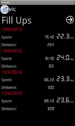 • List all your vehicles fill ups or display a summary, including an overall trend (If applicable)