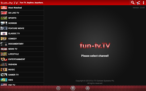 Over 200 FREE TV channels available to watch on your desktop, tablets and mobiles, huge selection of channels from all over the world, including BBC, ITV, Euronews, Sports Channels, etc. Subscription channels for HD channels also available, as well as lots more features, like program recording for later viewing, video on demand.