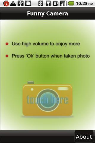 Funny Camera is a lame app designed to make fun out of your friends. Point and take picture of your friend with the app and it shows a funny picture with nice audio (not the picture taken).