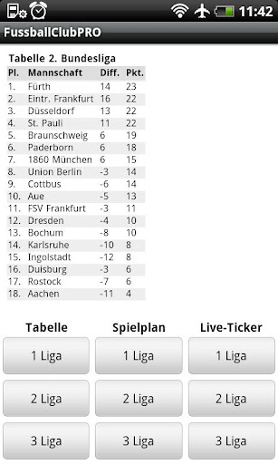 Zeigt die aktuellen Tabellen und Spielpläne sowie Torverhältnisse usw. der 1,2 und 3 Bundesliga an.