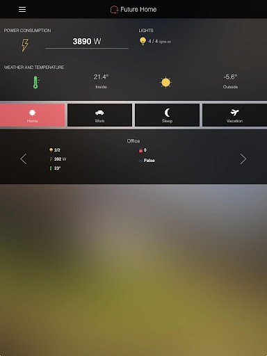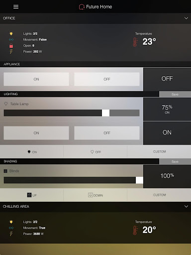 Future home lar deg styre lys, varme, alarm, dører, kamera, solskjerming, tv, musikk, multimedia systemer og andre elektroniske produkter på en enkel og genial plattform