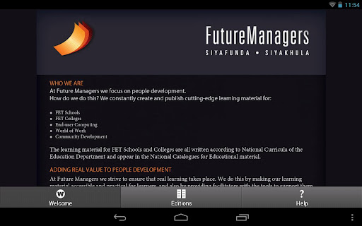 The Future Managers App offers students, learners, lecturers and those wishing to improve their world of work skills a wealth of enriched eBooks to choose from.