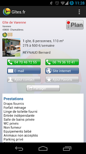 Des photos, les tarifs, les prestations proposées, le plan d'accès, les loisirs proches...