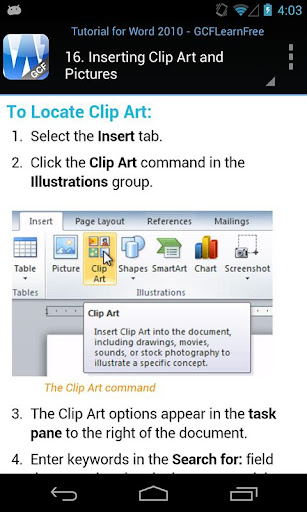 Frustrated with formatting? Struggling with mail merge? We can help! This GCF Word 2010 Tutorial app will guide you through the new features of Word 2010 to help you easily create professional-looking documents in no time. Whether you are new to Word or have used it for years, everyone will learn something new in this tutorial.