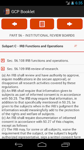 The GCP booklet App presents the regulations for good clinical practices in a user-friendly e-format. The users can easily reach to each section of regulations with customized view options. This is a convenient information and reference tool for all people working in pharmaceutical and biotech industry and researchers conducting clinical research.