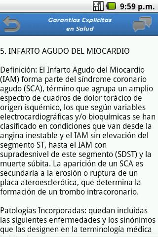 Esta aplicación entrega información relacionada a las patologías GES. Las Garantías Explícitas en Salud (GES) corresponden a un programa gubernamental ejecutado en Chile. Se enuncian todas las patologías con sus respectivas definiciones, diagnósticos incorporados, acceso, oportunidad, estudio, tratamiento y seguimiento según el caso.