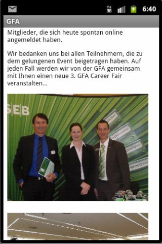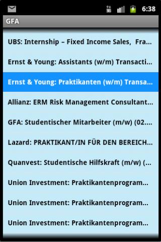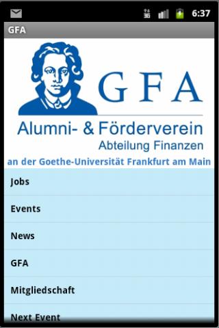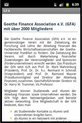 Die Features dieser Gratis-App für den User sind täglich aktuelle Informationen zu den Events resp. Fachvorträgen und Company Presentations der GFA mit namhaften global aufgestellten Unternehmen und Organisationen. Die App gibt Ihnen eine Terminübersicht zu diesen Veranstaltungen im House of Finance der Goethe-Universität Frankfurt auf dem neuen Campus Westend.