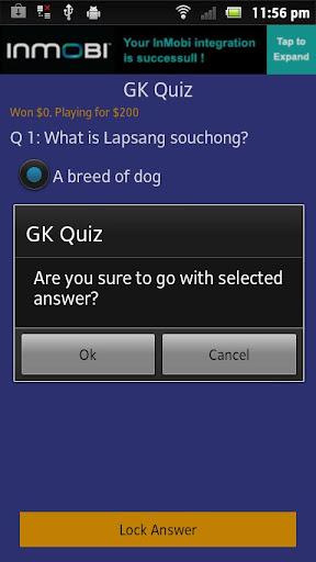 This is a general knowledge based quiz game for improving your knowledge. This game will help you in preparing for TV shows and help you in coming closer to becoming a millionaire:-). This game has a huge database of 2000 questions and would help you in your career and life. Download the version and starting practicing for reaching your goals. We are not affiliated to any TV or game shows and our idea is to help people in improving their knowledge base.