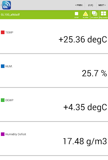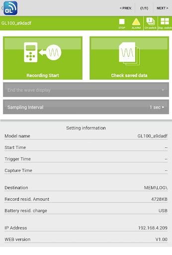 - Direct monitoring of measurement data of the "Petit LOGGER GL100-WL" by use of a smartphone or tablet terminal through a wireless LAN (IEEE802.11b).