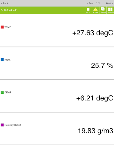 * In agriculture mode, it corresponds to "the Temperature/Humidity sensor (GS-TH), CO2 sensor (GS-CO2), Illumination/Ultraviolet sensor (GS-LXUV)". It is able to display a dedicated index for agriculture as the humidity deficit, accumulated temperature, accumulated illuminance, and accumulated ultraviolet. It allows you to have easy operation by large size button display, etc.