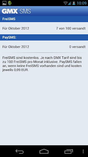 - Anzeige der verbrauchten und der noch verfügbaren GMX FreiSMS