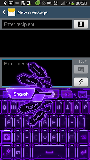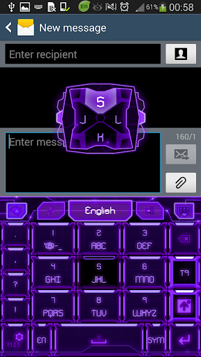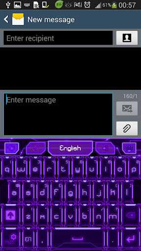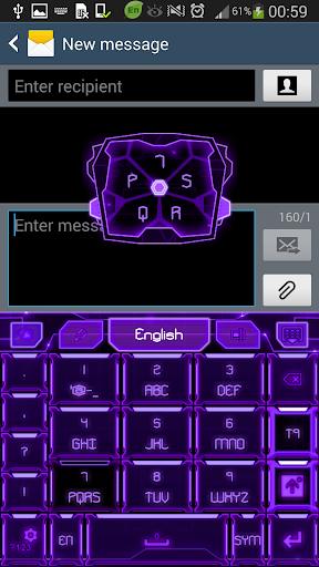 "GO Keyboard Purple Tech Theme" is a premium HD theme, designed by Inner Works Studios, for the sci-fi technology heads. The transparent keys have an amazing purple neon tech effect, they glow like a laser on a dark background, everything shines purple on a dark futuristic alien space ship design. The incredible high tech graphics will transform your keyboard with a unique stylish high-tech look. Enjoy our new free theme and feel free to check out the rest of our Tech series keyboards!