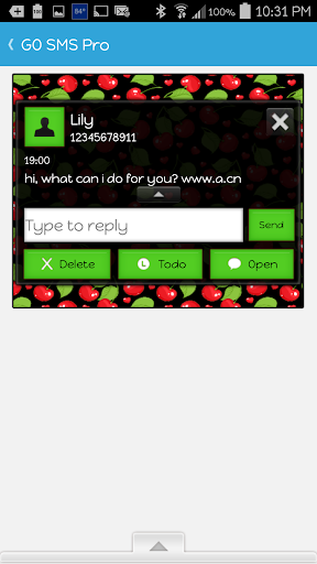 -Custom Font Colors (if you do not like the font color that the themes comes with, you can customize the theme font and font colors in the settings menu under the "advanced" tab in Go SMS Pro. This can be done with ANY Go SMS Pro theme).