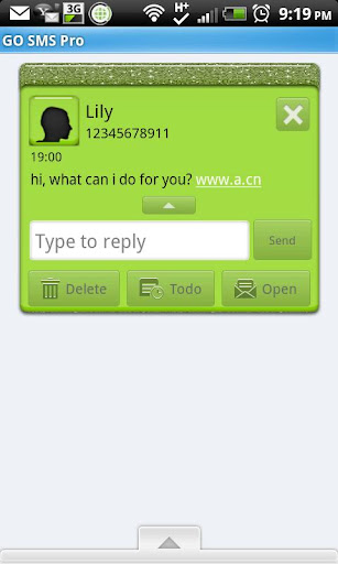 -Custom Font Colors (if you do not like the font color that the themes comes with, you can customize the theme font and font colors in the settings menu under the "advanced" tab in Go SMS Pro. This can be done with ANY Go SMS Pro theme).